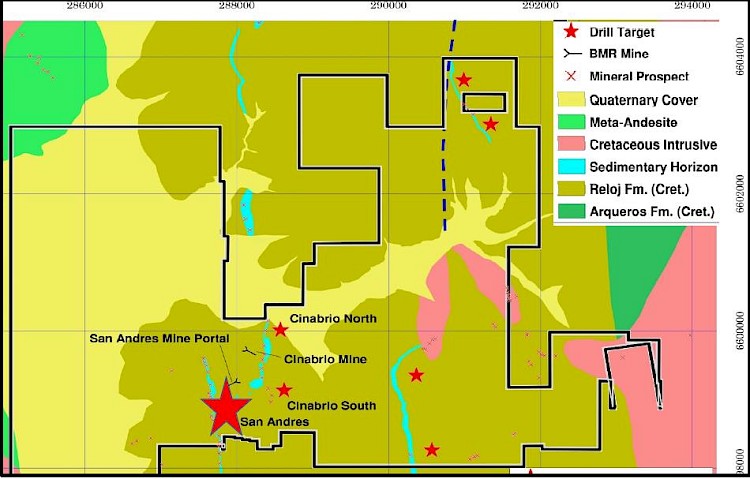 • San Andres is the "normal" fault-displaced upper portion of the adjacent Cinabrio copper deposit that is part of Punitaqui. Cinabrio was operated for nine plus years by Glencore and Xiana Mining.