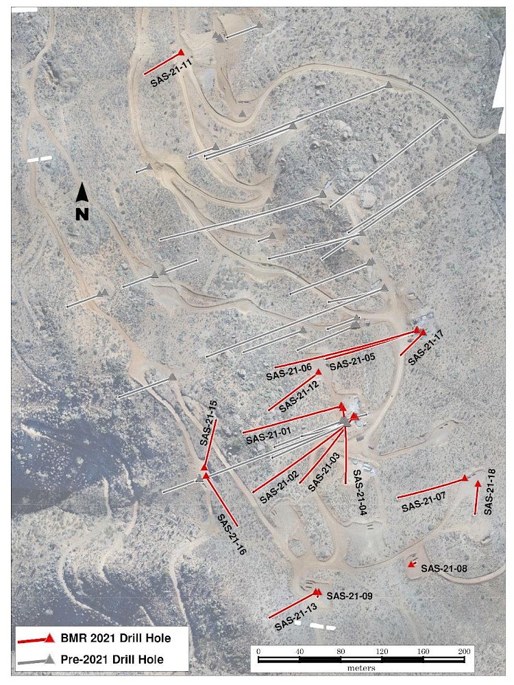 • Assay results from drillholes SAS-21-03, 04, 06, 07, and 08 totaling 199 samples (see Table 1) have been returned with encouraging results as follows: