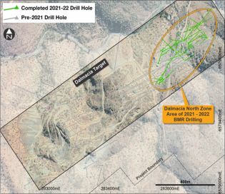 Significant BMR prior assay results received to date for the Dalmacia 2021-22 drilling include the following (see Table 2):